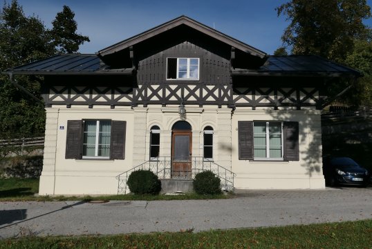 Die Villa Bayer gilt gemeinhin als schönste Polizeidienststelle Deutschlands. Ob das stimmt, sei jedem selbst überlassen. Ansprechend ist der Bau im Heimatstil des Historismus auf jeden Fall. Entworfen hat die Villa Bayer, und somit wahrscheinlich auch das Pförtnerhäuschen, Architekt Warschek 1874 im Auftrag des Prager Großkaufmannes Josef Bayer. Interessant ist das Pförtner- oder Bedienstetenhäuschen an der Bayerstraße, gleich gegenüber vom Haus der Berge.